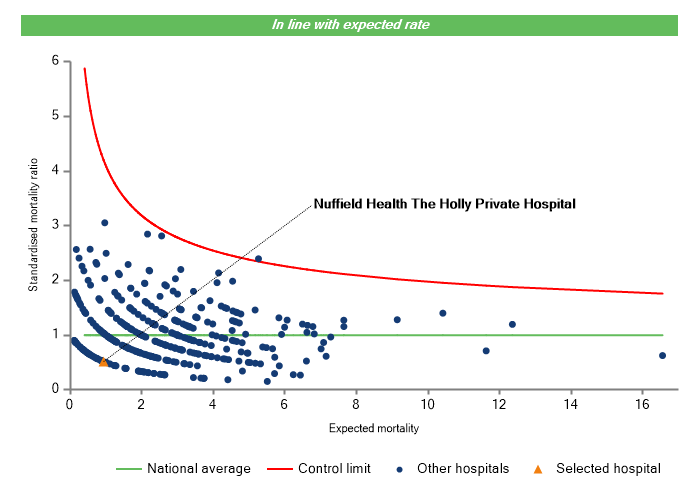 It is important to note that the types of patients a hospital treats and the procedures it carries out can explain variation in patient outcomes after surgery. Please click on the “How to interpret this chart” button for further information.