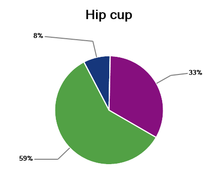 This information display shows overall characteristics for first-time hip replacement patients treated at this hospital between 1 April 2003 and 31 March 2024. Against each characteristic you will be able to see whether this hospital has treated a greater or fewer number of patients of a particular type. This hospital is represented on the chart by the black marker (