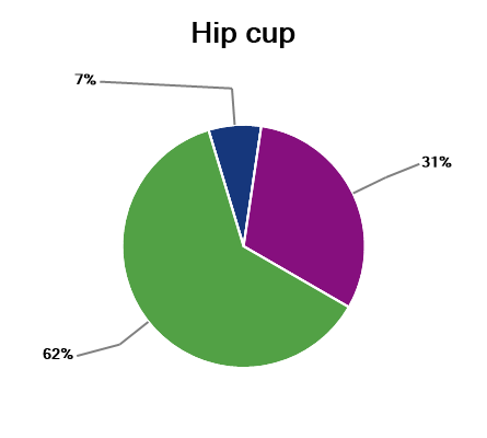 This information display shows overall characteristics for first-time hip replacement patients treated at this hospital between 1 April 2003 and 31 March 2024. Against each characteristic you will be able to see whether this hospital has treated a greater or fewer number of patients of a particular type. This hospital is represented on the chart by the black marker (