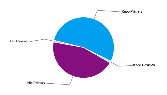 Primary hip replacement Primary total knee replacement Primary unicondylar (partial) knee replacement Revision knee replacement |