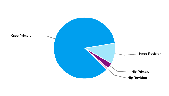 Primary hip replacement Primary total knee replacement Primary unicondylar (partial) knee replacement Primary patello-femoral replacement Revision knee replacement |