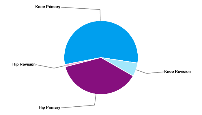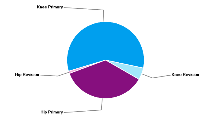 Primary hip replacement Primary total knee replacement Primary unicondylar (partial) knee replacement Primary patello-femoral replacement Revision knee replacement |