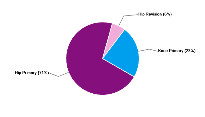 Primary hip replacement Revision hip replacement Primary total knee replacement |