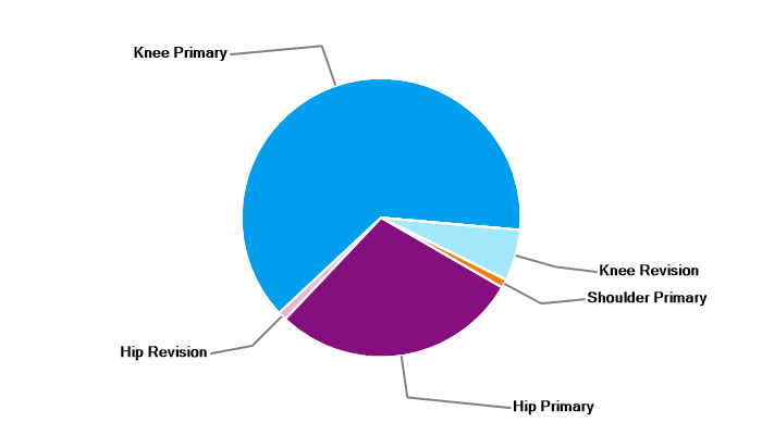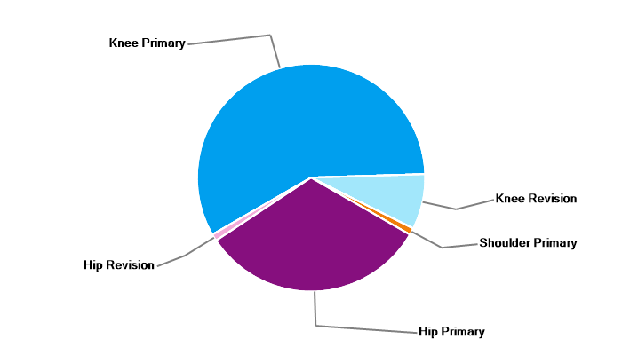 Primary hip replacement Hip resurfacing Primary total knee replacement Primary unicondylar (partial) knee replacement Primary patello-femoral replacement Revision knee replacement |