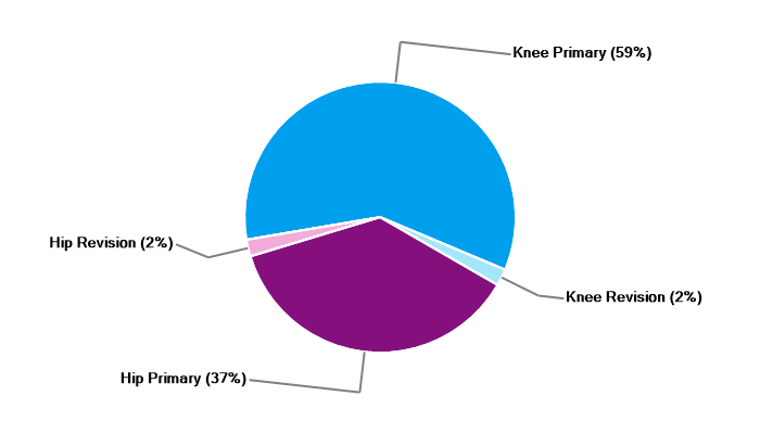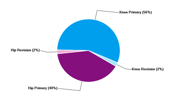 Primary hip replacement Revision hip replacement Primary total knee replacement Primary unicondylar (partial) knee replacement Revision knee replacement |