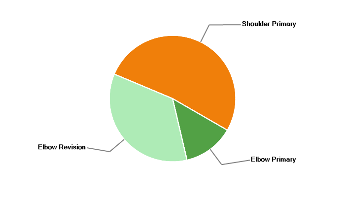 Primary elbow replacement Revision elbow replacement Primary shoulder replacement |