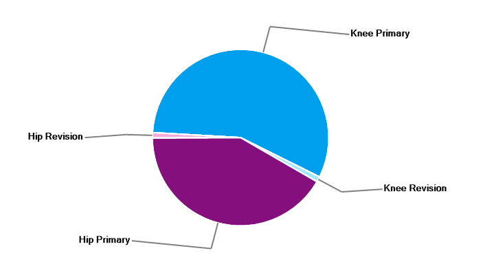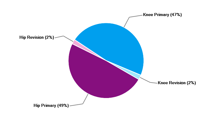 Primary hip replacement Revision hip replacement Primary total knee replacement Primary unicondylar (partial) knee replacement Revision knee replacement |