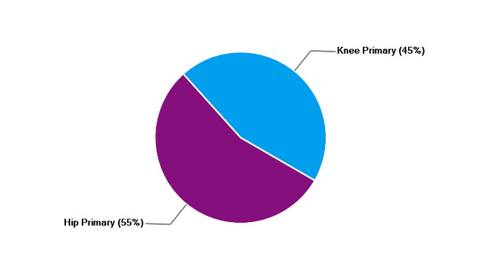 Primary hip replacement Revision hip replacement Primary total knee replacement Primary unicondylar (partial) knee replacement Primary patello-femoral replacement Revision knee replacement |