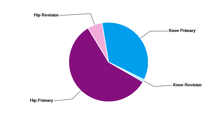 Primary hip replacement Revision hip replacement Primary total knee replacement Revision knee replacement |