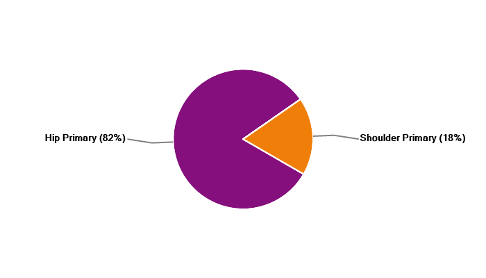 This information display shows overall characteristics for first-time shoulder replacement patients treated by this surgeon between 1 April 2012 and 31 March 2025. Against each characteristic you will be able to see whether this surgeon has been responsible for a greater or fewer number of patients of a particular type. This surgeon is represented on the chart by the black marker (