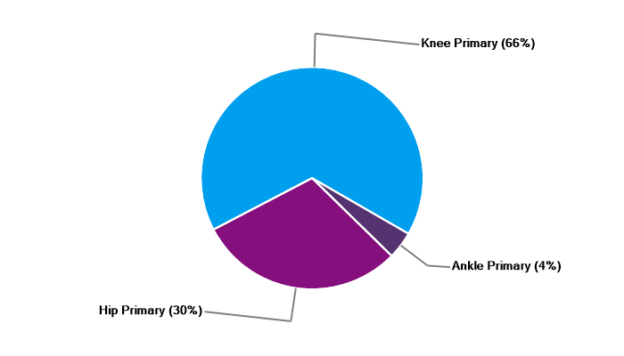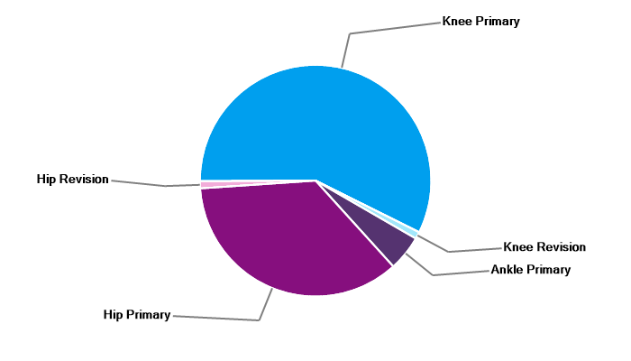Primary hip replacement Primary total knee replacement Primary unicondylar (partial) knee replacement Primary patello-femoral replacement Revision knee replacement Primary ankle replacement Revision ankle replacement |