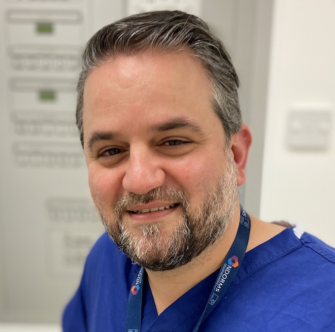 This information display shows overall characteristics for first-time knee replacement patients treated by this surgeon between 1 April 2003 and 31 March 2024. Against each characteristic you will be able to see whether this surgeon has been responsible for a greater or fewer number of patients of a particular type. This surgeon is represented on the chart by the black marker (