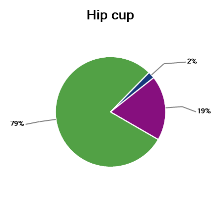 This information display shows overall characteristics for first-time hip replacement patients treated by this surgeon between 1 April 2003 and 31 March 2024. Against each characteristic you will be able to see whether this surgeon has been responsible for a greater or fewer number of patients of a particular type. This surgeon is represented on the chart by the black marker (