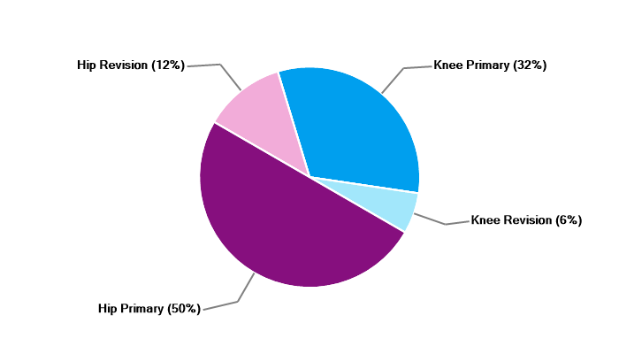 Primary hip replacement Revision hip replacement Primary total knee replacement Revision knee replacement |