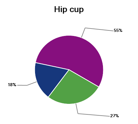This information display shows overall characteristics for first-time hip replacement patients treated by this surgeon between 1 April 2003 and 31 March 2024. Against each characteristic you will be able to see whether this surgeon has been responsible for a greater or fewer number of patients of a particular type. This surgeon is represented on the chart by the black marker (