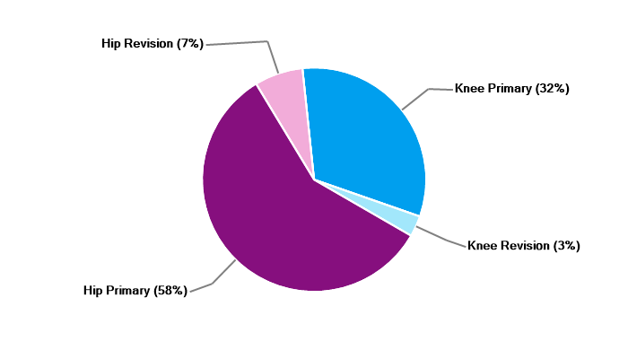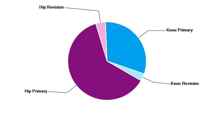 Primary hip replacement Revision hip replacement Primary total knee replacement Primary unicondylar (partial) knee replacement Revision knee replacement |