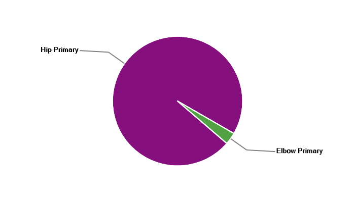 This information display shows overall characteristics for first-time hip replacement patients treated by this surgeon between 1 April 2003 and 31 March 2025. Against each characteristic you will be able to see whether this surgeon has been responsible for a greater or fewer number of patients of a particular type. This surgeon is represented on the chart by the black marker (